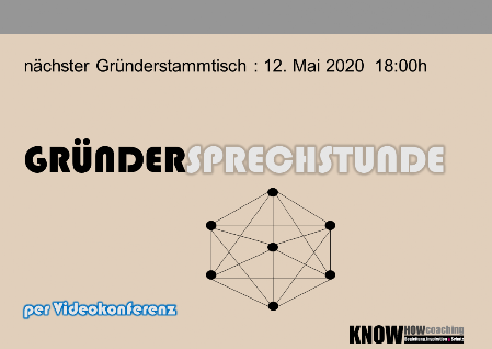 Eine Gründersprechstunde fand am Dienstag 12. Mai 2020  statt.